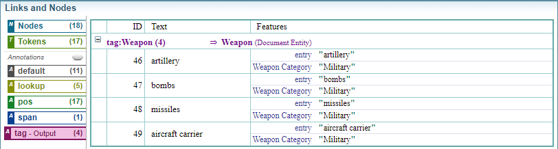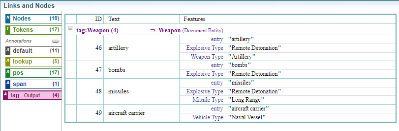 Below is an example of a simple Dictionary, where each word listed will be tagged as a Weapon.