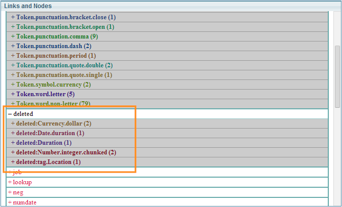 The text graph analyser shows links that have been deleted from the graph under the "Deleted" names pace; for example: