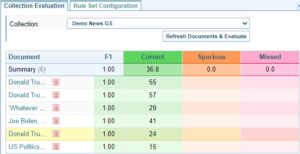 When you change a rule, you can select to evaluate the updated rules against the Gold Standard Collection of documents.