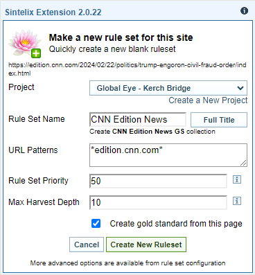 to manually harvest another page. See Harvest via Sintelix Extension. Make sure you check the advanced checkbox feature so you can: