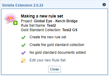 Select Edit your new Rule Set to open the Rule Set in Sintelix, or select Close to close the dialog.