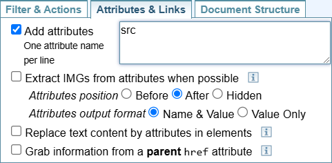 To harvest content linked to by a hypertext link (A tag), select the Harvest hyperlinks checkbox.