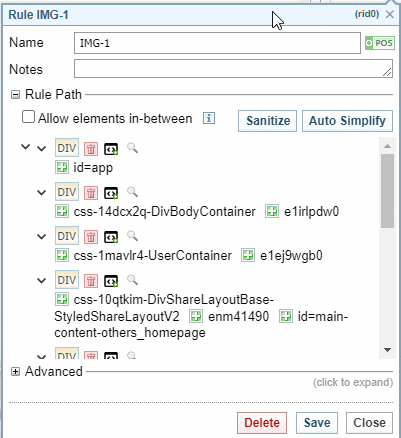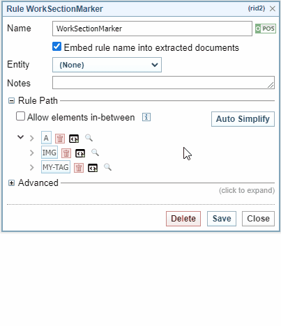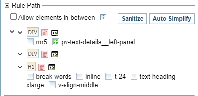 To automatically remove extraneous tags and classes from the path, to the point where the effect of the rule on the gold standard is not changed, click .