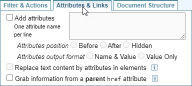 To replace the content of the element with a list of the element attributes, select the Replace text content by attributes in elements checkbox.