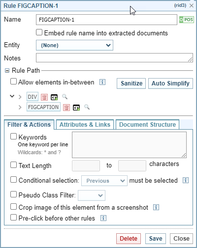If you want Sintelix Harvester to expand hidden content by simulating mouse clicks before harvesting, select the Pre-click before other rules checkbox.