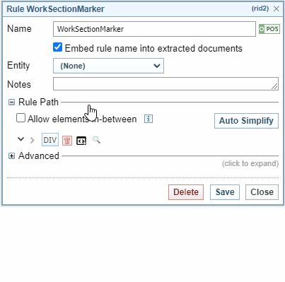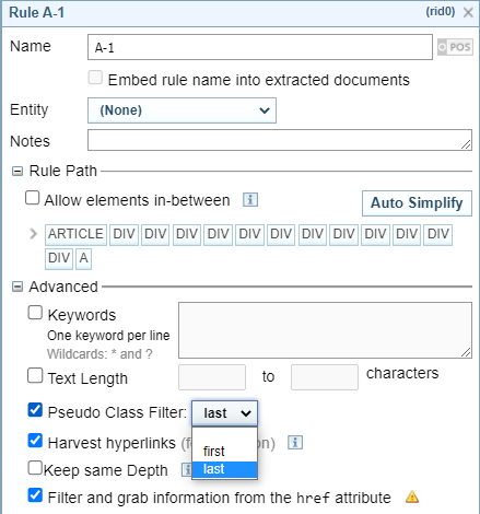 The Rule Path is the core of the rule. The Rule Path instructs Harvester how to identify content based on the html element tags and associated class values.