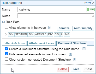 When selected, the elements selected by this rule will be hidden in the final document. They will be able to be displayed when viewing the document using the Find Structure option.