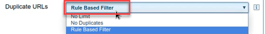 This option only appears when the Duplicate URLs dropdown is set to Rule Based Filter under the Rule Set Configuration tab.
