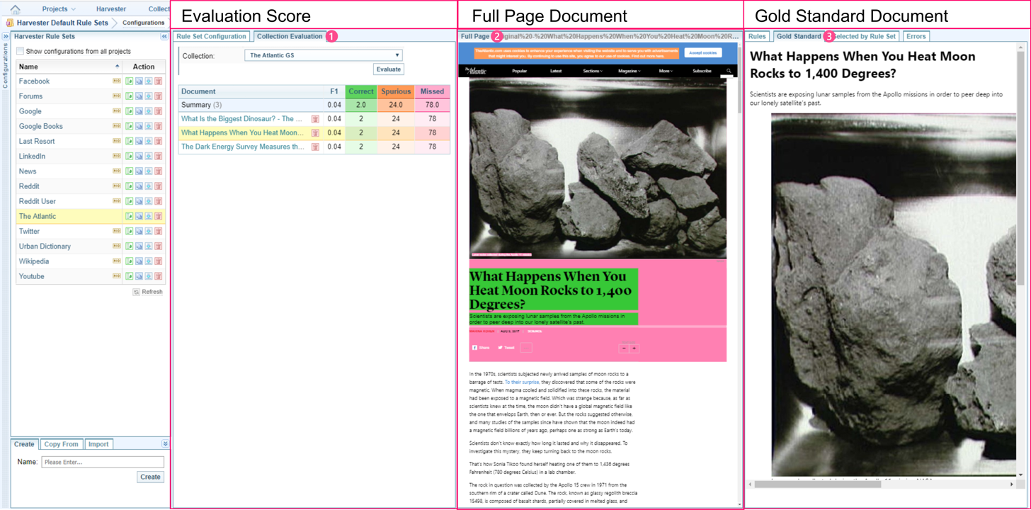 to collapse the Configurations, Harvester Rule Sets, and Collection Evaluation panes.