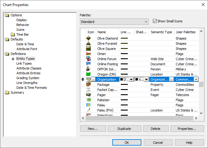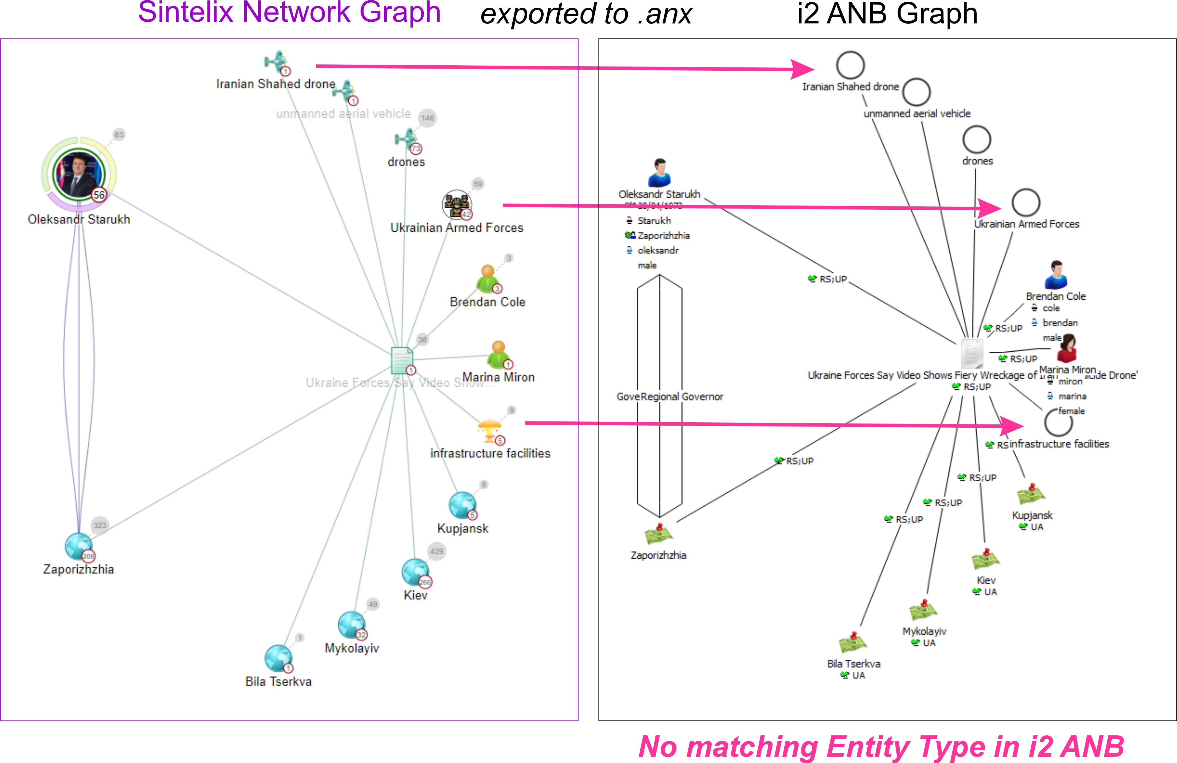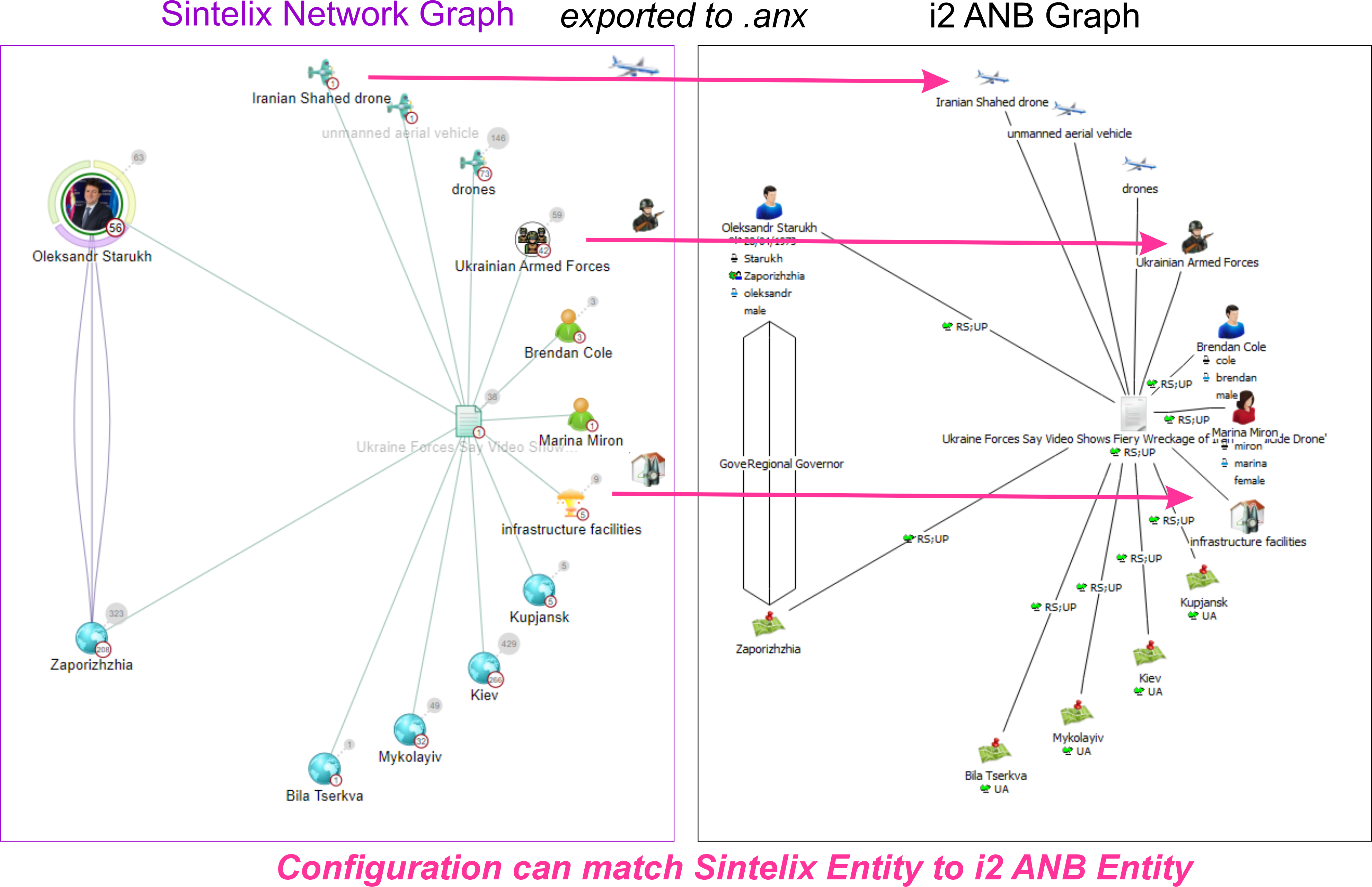 For example, the Person entity in Sintelix can be matched to the Person entity type in i2 ANB, adopting the icon and formatting settings.