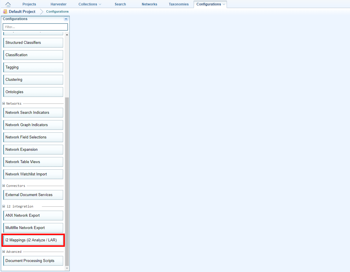 - In the list of configurations types, select i2 Mappings (i2 analyse/LAR).