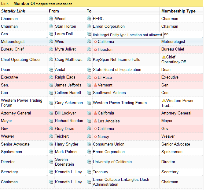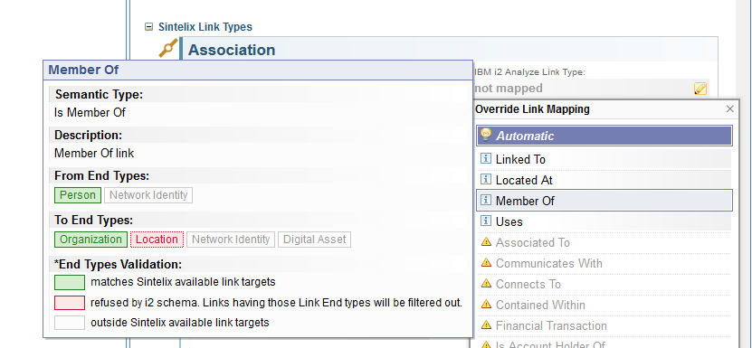At this point, Association is a link type that only links from Person to organisation, so is mapped to an i2 link type without warnings.