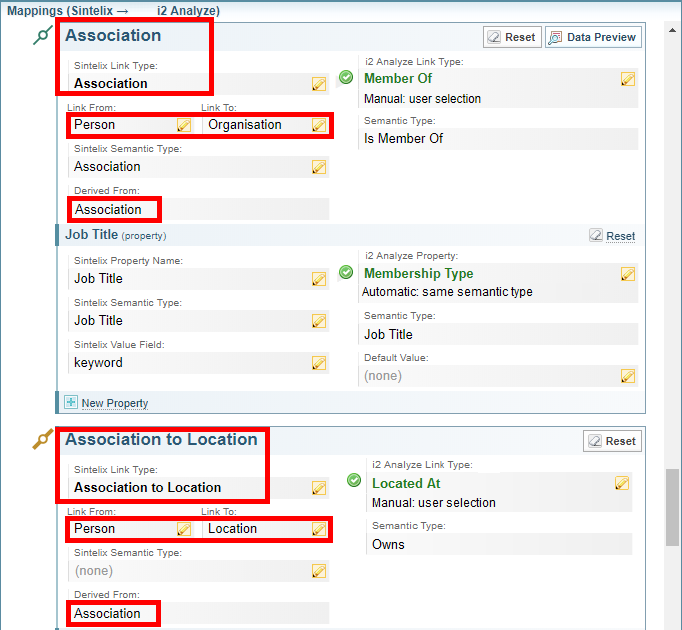 At this point there are two Sintelix link types, and both can be mapped independently. Both are derived from the underlying Association network type, but have different targets.
