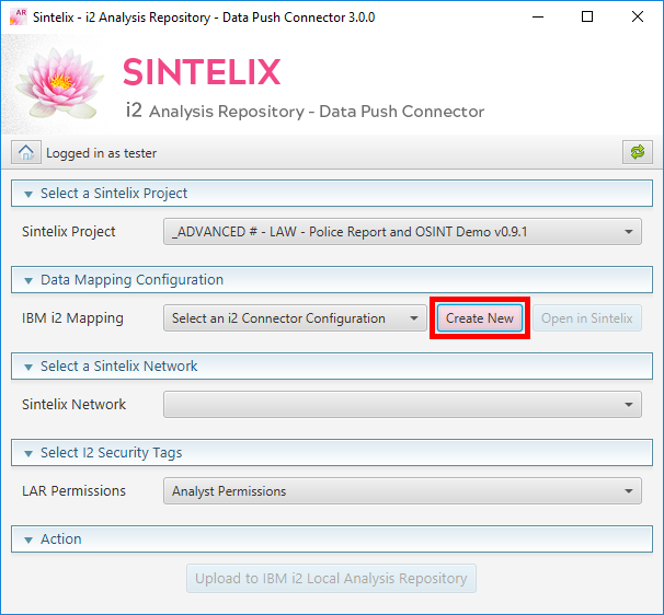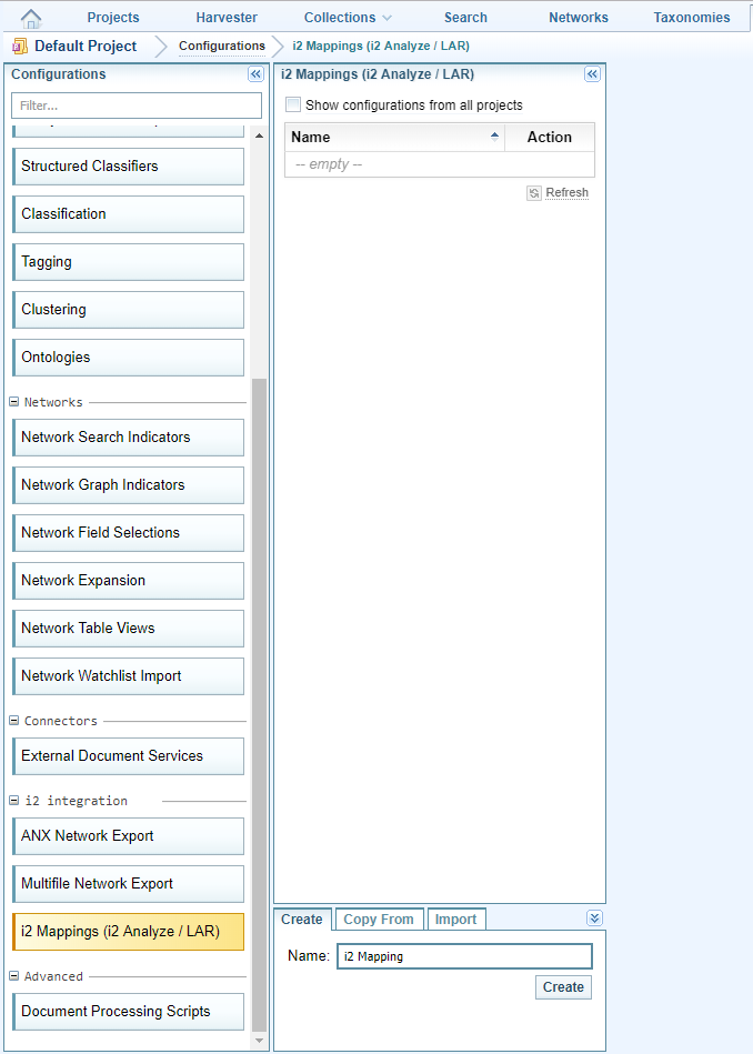 - In the Name field at the bottom of the i2 Mappings (i2 analyse/LAR) pane, enter a name for the Configuration, then click Create.
