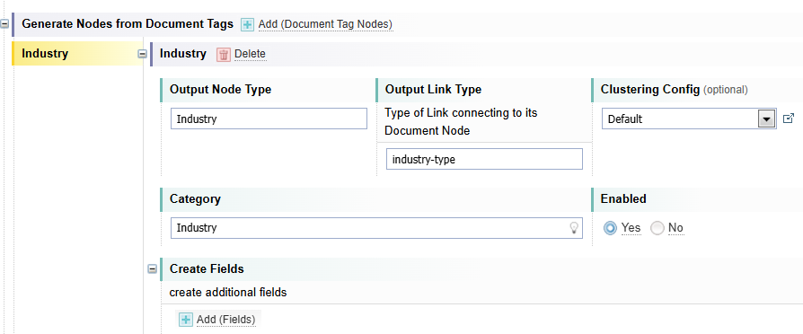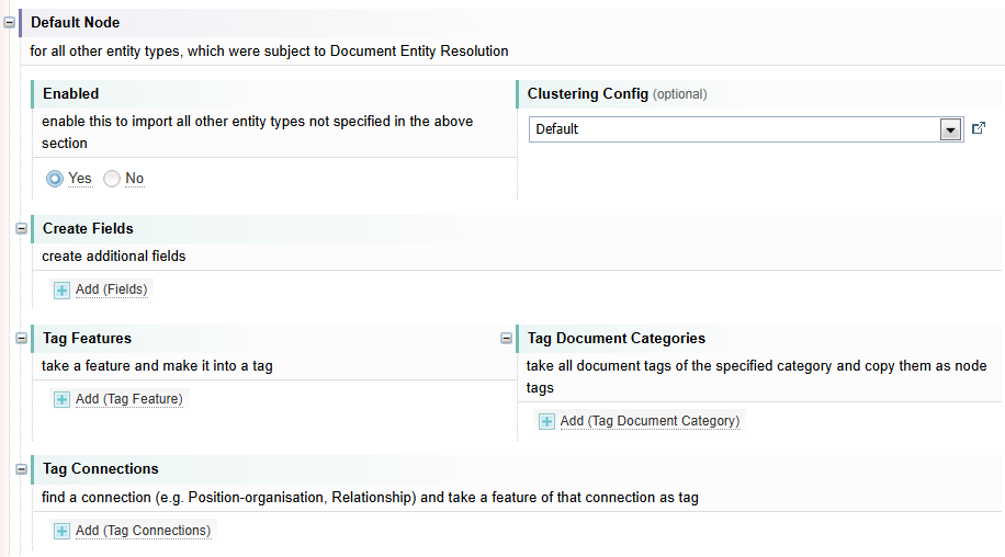 Before adding Entity Nodes, it is helpful to first generate a Network with the Default Node section Enabled field set to Yes. This will help you identify all Entities across the all the Documents in the Collection and decide which Nodes you want to keep or disable.