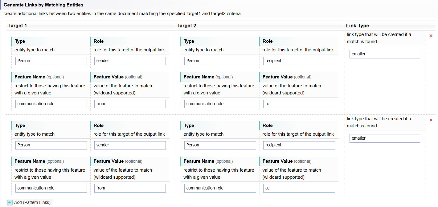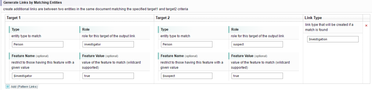 Links - defines the nature of the links generated, including relation and colocation links.