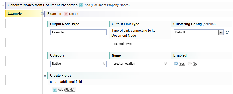 Example: In the example below, the [Create Singleton] clustering configuration is set. This Clustering configuration will allow documents with the same name to be created as separate Document Nodes in the Network.