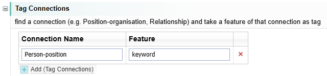For example, the keyword features from the Person-position link is added as a tag. This would usually be the position title roles held by the person.
