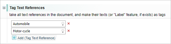 In this example Automobile and Motor-cycle have been added to the Text Reference list and are created as tags for each Document Node.