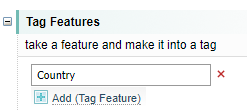 For example, the Country feature is added as a Tag to each Automobile entity. If the entity does not have the feature, then it is ignored.