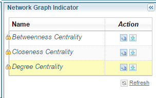 Network Graph Indicators are a measure of a Cluster Node's "centrality" - how central it is in the Network. There are three predefined centrality measures offered by these indicators, Betweenness, Closeness and Degree.