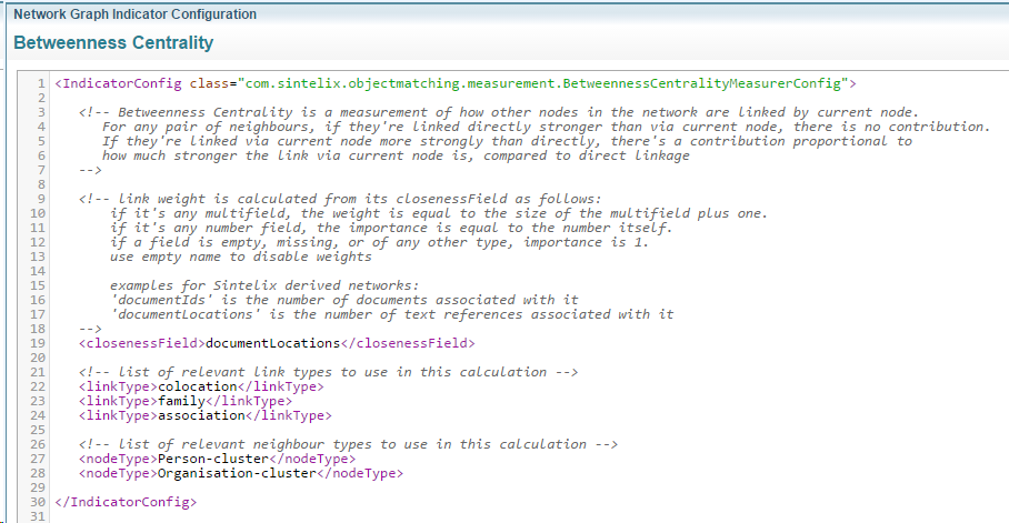 The defined Network Graph Indicators are available for use as source for Generated Fields. The predefined indicators measure centrality for Person- and Organisation-Cluster Nodes.