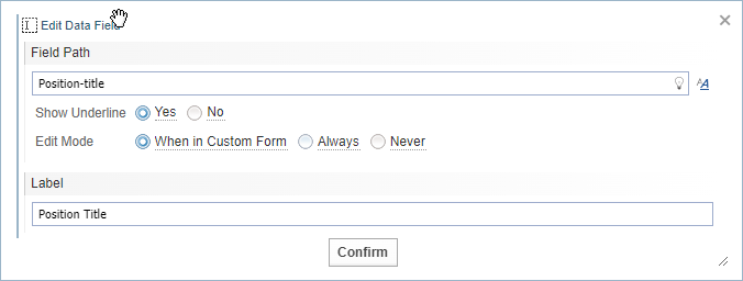 For example, the first field below has the Show Underline option set to Yes,while the second field has the Show Underline option set to No.