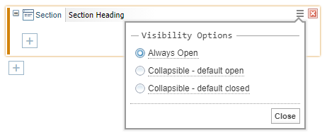 In the example below, both the Listing and Section components have the Collapsible option applied, adding the collapse