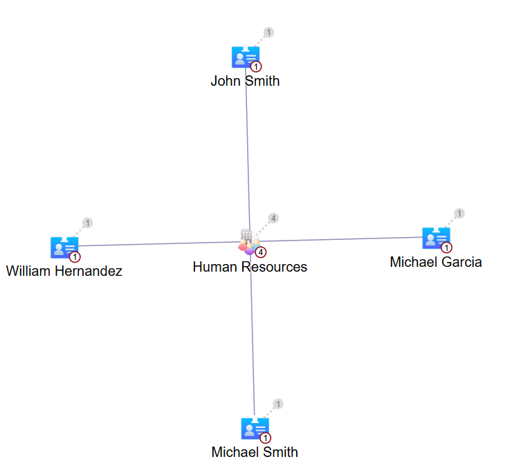 We can view a Network Graph to explore the relationships created from the data. In this case, the members of the Human Resources Department.