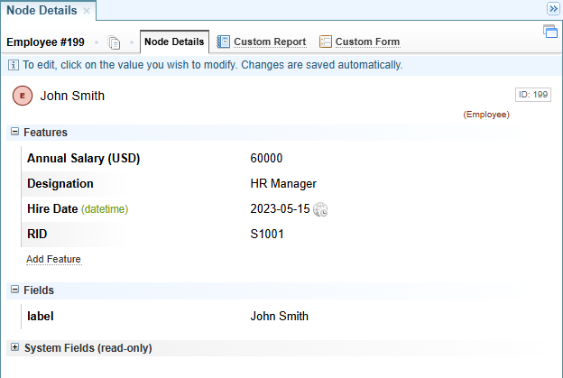 You can define the nodes (entities) you want created. You can add fields and features to the node from the source data fields. |