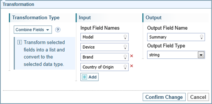 For example, convert a string to a number, change a date format, combine fields to create a new field, etc.