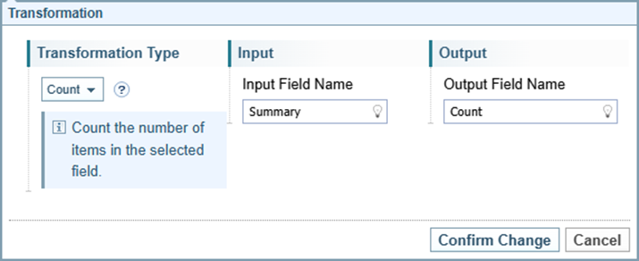 The Count transformation counts how many items are in the selected field. Usually used to count items in a List or Map data structure.