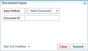 Workflow dropdown: Selecting an option from the Workflow dropdown in the Document Input pane.