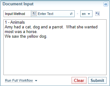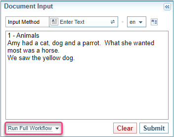 To remove the configuration editing pane, re-run the test by clicking on the Submit button in the Document Input pane.