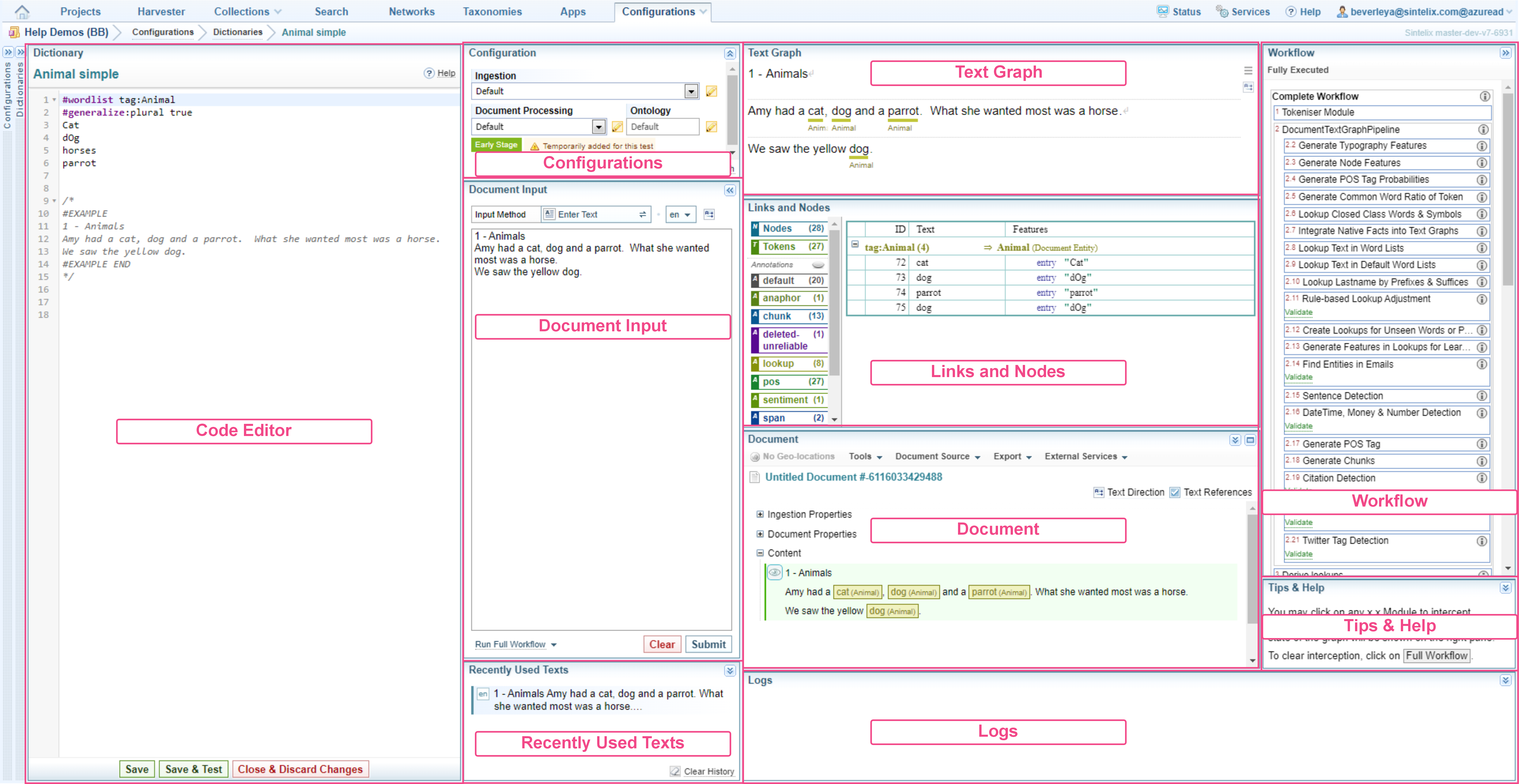 The Text Graph Analyser allows you to test your Dictionaries and Entity Extraction Scripts to check if the code is working as expected.
