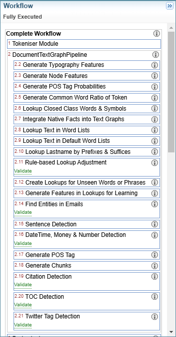 The Workflow pane is collapsed by default. Select the Workflow List expand icon at the top right of the Text Graph Analyser to open the Workflow pane.