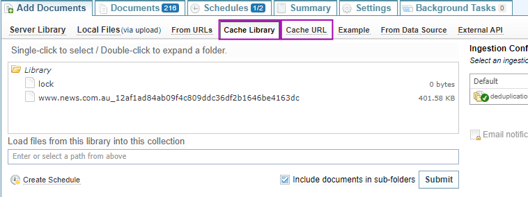However, the Cache location is not visible to the user in the Add Documents panel.