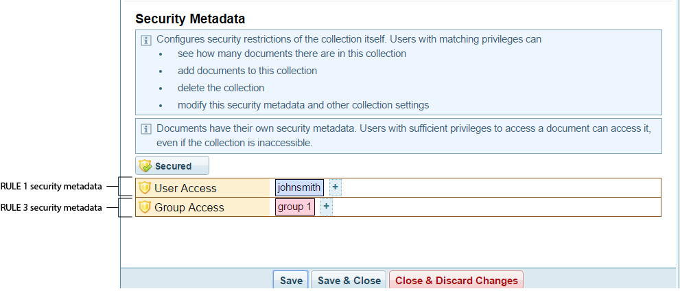 Security Metadata: Collections > Collection > Collection Configuration > Security Metadata pane |