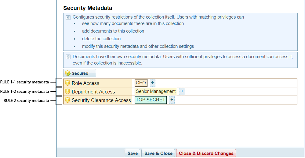 Sintelix UI output: Security Metadata : Collections > Collection > Collection Configuration > Security Metadata pane |