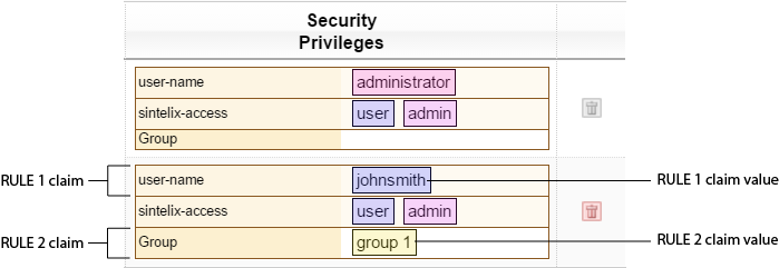 The default security metadata rules will assign the active user johnsmith 's security privileges to any new Documents or Collections he creates. Sintelix UI output: Security Privileges : Admin > Manage User Accounts > Users authenticated by Sintelix > Security Privileges column |