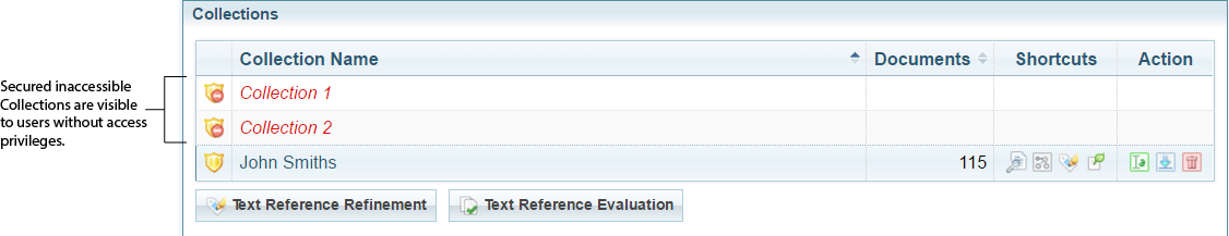 When set to In Sintelix, the names of restricted collections are visible, but all other information such the number of documents cannot be viewed. |