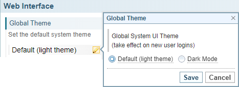 You can set the System default theme to light (default) or dark. The system default theme applies to the login page and for all new users.
