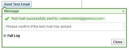 Result: The following dialog is displayed, indicating the status of the test message and providing access a log.