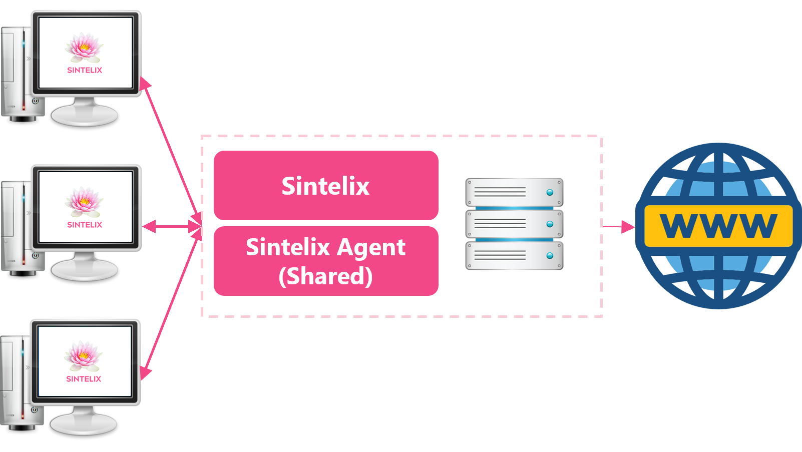The diagrams below illustrate the different installation configurations for the Sintelix Agent: