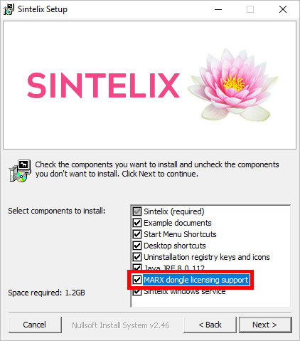 If you install Sintelix using the Sintelix Windows installer, make sure you select MARX dongle licensing support on the screen that lists components that can be installed. This will install the necessary drivers.