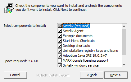 Sintelix installs its own copy of Java JRE and installs itself as a Windows service. It starts the Java VM with a memory limit of 12 GB. If you wish to use your own Java JRE, you can unselect this option. Advanced Option: Recommend leave selected. |