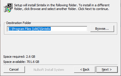 - To install Sintelix in a different folder, select Browse, go to the folder, or create a new one, then select OK.
