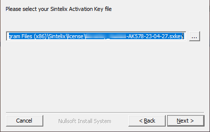 - If the Sintelix Activation Key file is placed in the same folder as the Sintelix Installer file, the file name is automatically displayed.