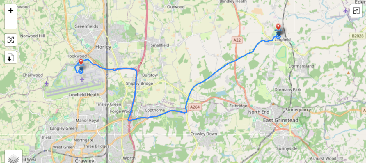 Directions from Lingfield to Gatwick Airport (KMZ)